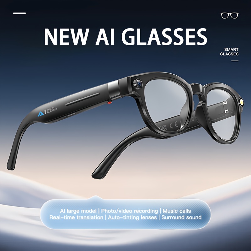 [AI Translation Glasses] AI Translation Glasses, Video Glasses 4K, Smart Camera Glasses with 150+ Languages - Real-time Translation, Chat GPT, Wireless Calling, Music Playback & Voice Assistant, Multi-functional Smart Glasses